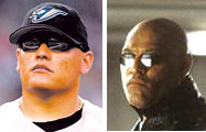 Laurence Fishburne as P Gustavo Chacin - Fishburne once again dons his Morpheus glasses and scalp to bring Chacin to the big screen. Can also use the Matrix line "Stop trying to hit me, and hit me" to taunt opposing batters.